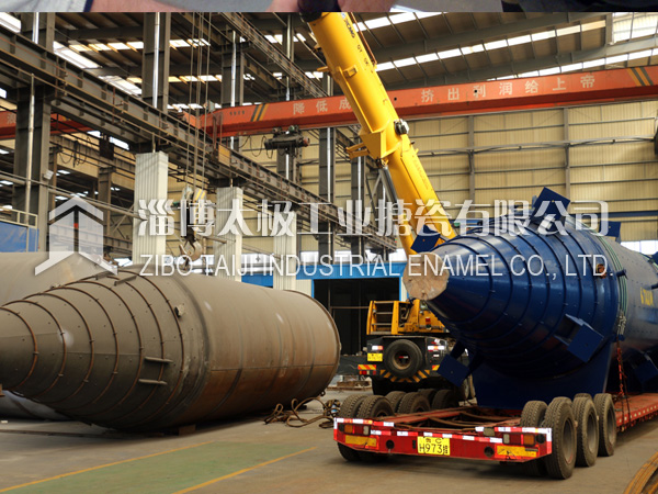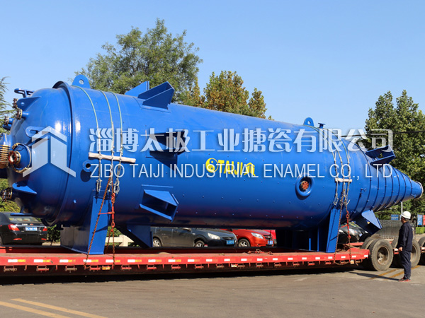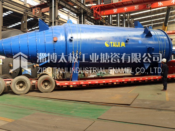 2018年10月10日,兩臺目前國內最長的搪玻璃設備搪玻璃錐形反應釜(60000L)在太極制造完畢,并順利圓滿裝車運往用戶基地。根據技術部提供的參數,該設備長度為13.8米,是目前國內最長的搪玻璃設備