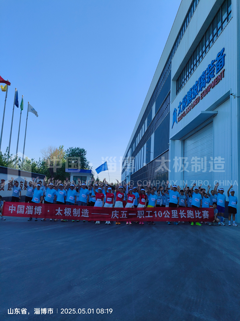 5 月 1 日,淄博太極搪玻璃設備公司 2025 年 “慶五一?展風采” 職工文體活動在廠區廣場火熱啟幕,百余名員工以飽滿熱情投身這場融合競技與趣味的盛會。活動現場設置六大特色項目:羽毛球雙打上演攻防對決,乒乓球單打 / 雙打盡顯小球智慧,拔河比賽迸發集體力量,齊心協力跑考驗步伐協同,跳繩接力串聯團隊默契,10 公里長跑挑戰耐力極限。賽場上,員工們揮汗拼搏、斗志昂揚,場邊歡呼聲、加油聲匯成熱烈浪潮,多輪激烈角逐后,各項目冠亞軍榮耀誕生。